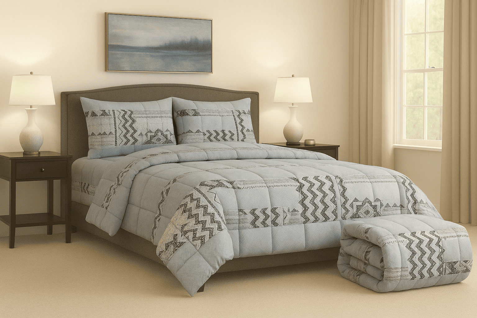 Η γέμιση του προσφέρει πλούσια θερμότητα, ιδανική για τις κρύες νύχτες του χειμώνα, ενώ το εξωτερικό του ύφασμα είναι απαλό στην αφή, προσφέροντας αίσθηση θαλπωρής και πολυτέλειας.