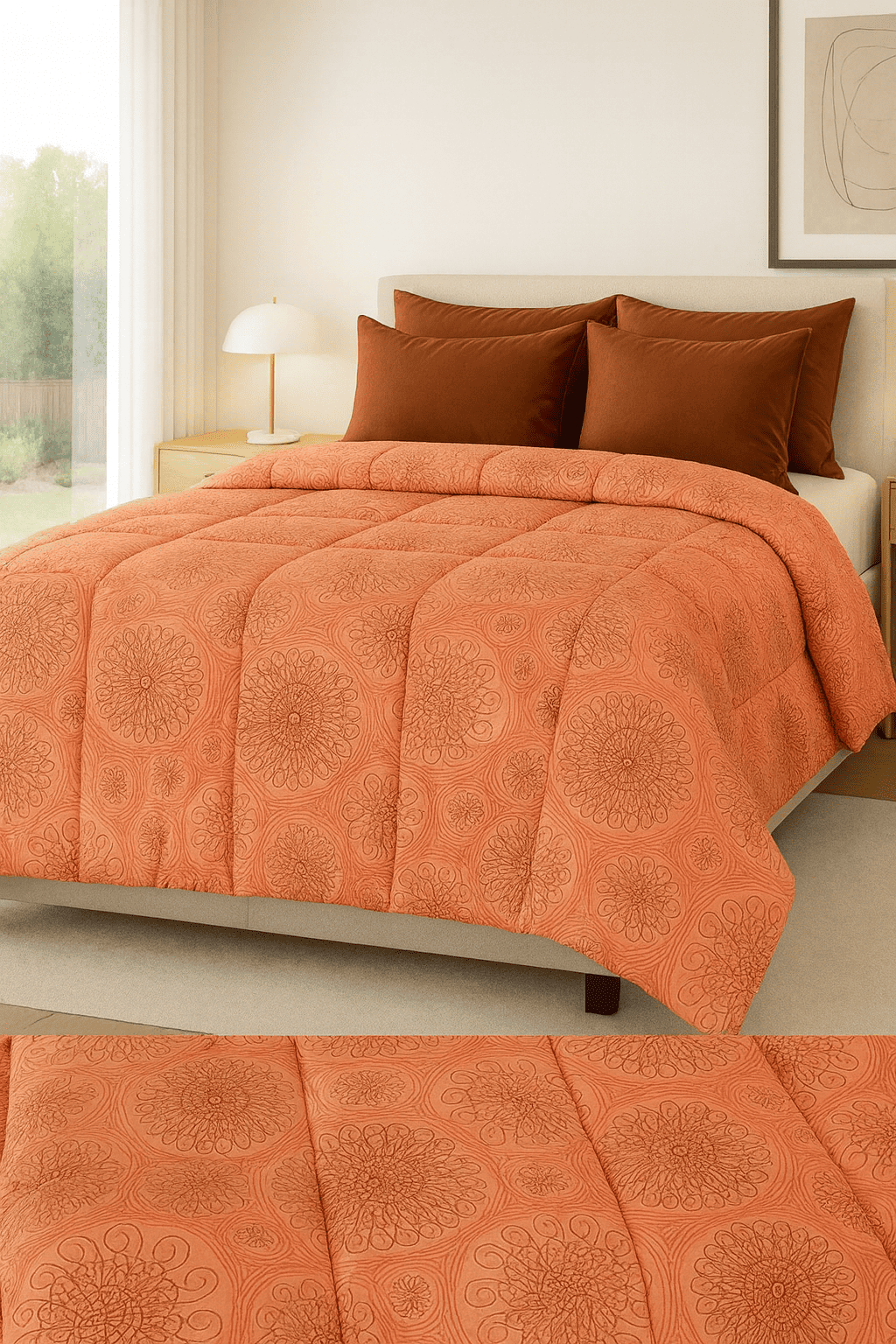 Δώστε στην κρεβατοκάμαρά σας την κομψότητα και τη ζεστασιά που της αξίζει με το υπέρδιπλο πάπλωμα Mojo της σειράς Love Home. Σε γήινη πορτοκαλί απόχρωση με διακριτικά κυκλικά μοτίβα, αποπνέει αίσθηση πολυτέλειας και μοντέρνου χαρακτήρα, ενώ ταυτόχρονα προσφέρει απόλυτη άνεση για έναν χαλαρωτικό ύπνο.